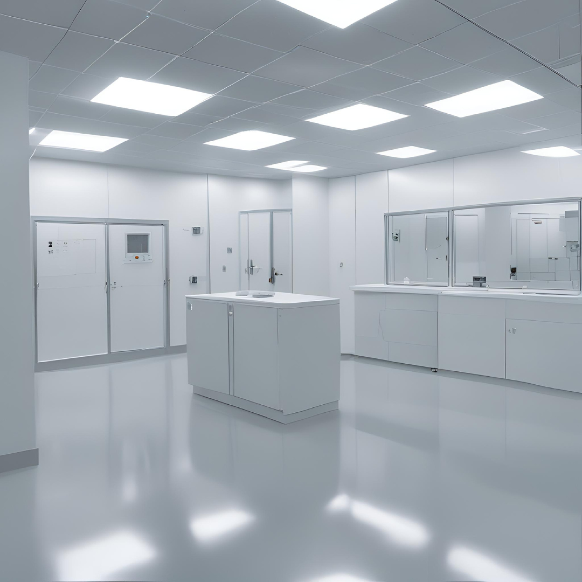 - ผนังและเพดาน: ต้องใช้วัสดุที่ไม่ก่อให้เกิดฝุ่นและทำความสะอาดได้ง่าย เช่น แผ่นเหล็กเคลือบ ผนังพลาสติก